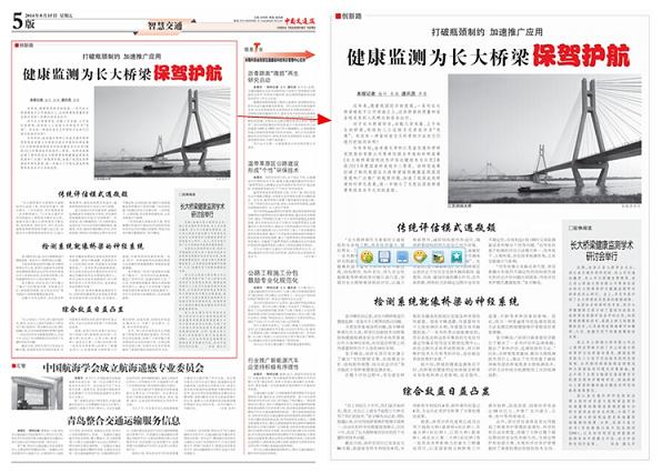 健康监测为桥梁保驾护航《中国交通报》2014年8.15第五版智慧交通版面刊出