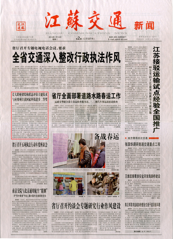 长大跨桥梁结构评估技术与应用项目获国家科技进步二等奖《江苏交通报》