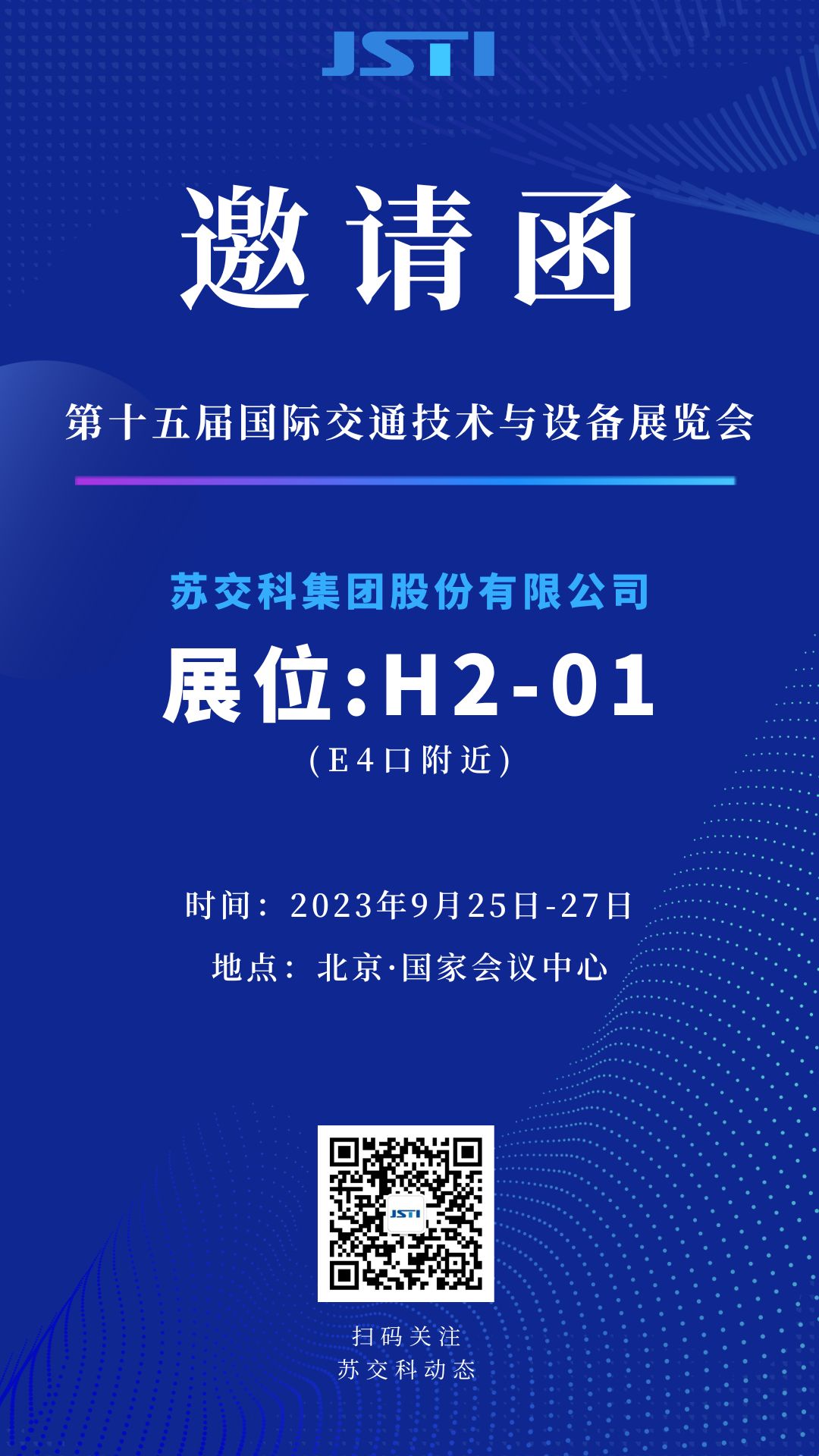 2023年09月25至27日,由交通运输部主办、中国国际可持续交通创新和知识中心具体承办的全球可持续交通高峰论坛暨第15届国际交通技术与设备展览会将于北京举行。大会期间,苏交科携海外子公司Eptisa在北京国家会议中心展览区设立主题展位(展位号:H2-01,E4口附近)。诚挚邀请您莅临苏交科展位参观指导。